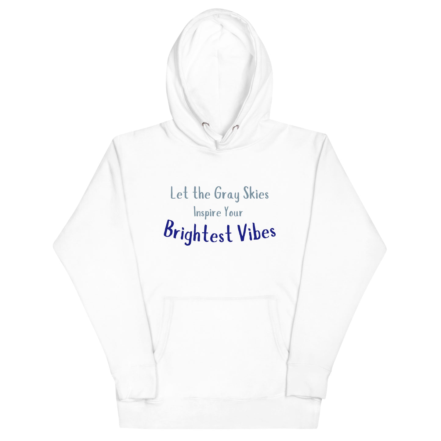 Embrace the power of optimism and resilience with our exclusive "Gray Skies, Bright Vibes" hoodie. This unique design features an uplifting message that inspires you to find your inner sunshine and cultivate positivity, even during life's stormy seasons.